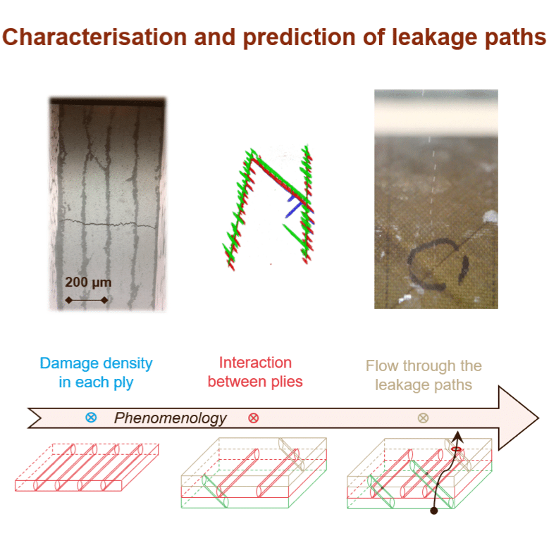 It is structured around three main axes: 1) characterizing AFP defects and their influence on the thermomechanical behavior of thin and thick laminates, 2) linking these defects to composite permeability through experimental tests on flat and tubular samples with calibrated singularities, 3) improving the prediction of cracking scenarios using multi-scale modeling of the relationship between defects and damage mechanisms.